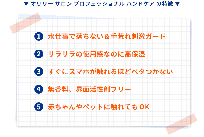 オリリー サロンプロフェッショナルハンドケアは、理美容師の手荒れ事情に着目し生まれたハンドクリームです。
